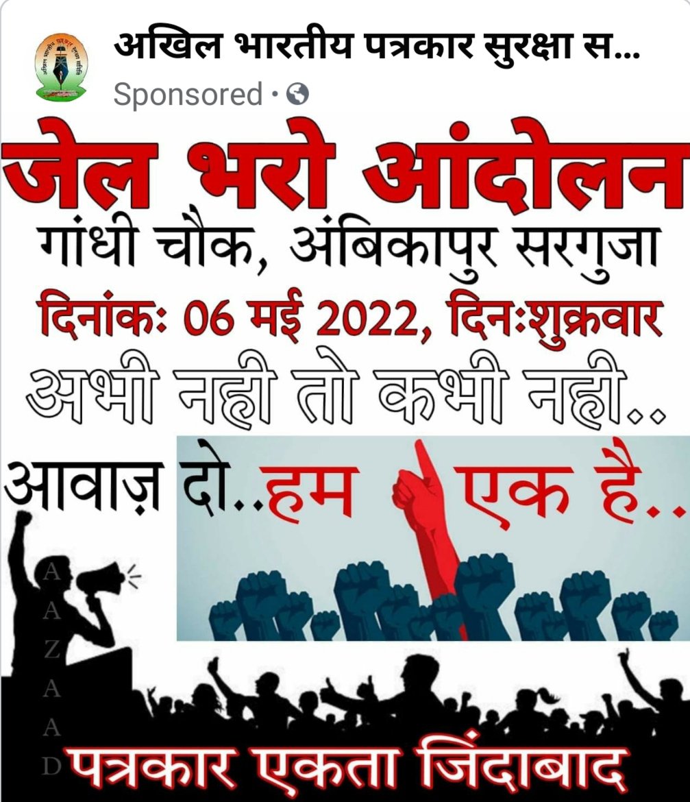 अखिल भारतीय पत्रकार सुरक्षा समिति के राष्ट्रीय महासचिव महफूज खान,राष्ट्रीय उपाध्यक्ष राकेश परिहार,राष्ट्रीय उपाध्यक्ष नितिन सिन्हा, अम्बिकापुर जिलाध्यक्ष सुशील बखला,सूरजपुर जिलाध्यक्ष राजेश सोनी,बलरामपुर जिलाध्यक्ष शैलेन्द्र सिंह मनेंद्रगढ़ जिलाध्यक्ष सुरजीत सिंह रैना के नेतृत्व में होने जा रहे आंदोलन को सफल बनाने पूरे प्रदेश के पत्रकार 6 मई को अम्बिकापुर पहुँच रहे है। पत्रकार एकता अब दिखाने का समय आ चुका है प्रदेश में कार्य करने वाले पत्रकारों पर अब किसी भी प्रकार का अत्यचार नही शहा जाएगा और जब तक प्रदेश में पत्रकार सुरक्षा कानून लागू नही हो जाता है सरकार के खिलाफ हल्ला बोल जाता रहेगा।