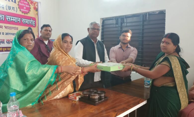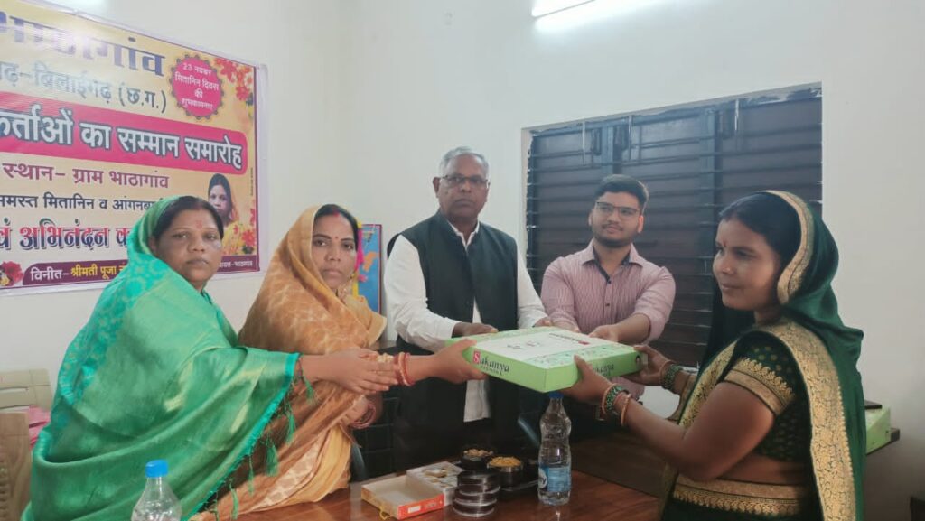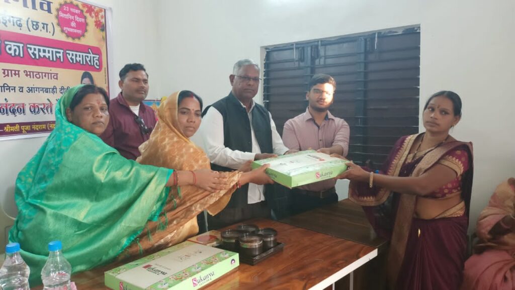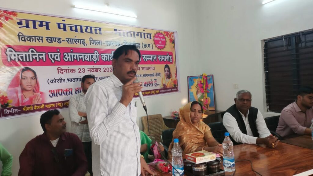 सारंगढ़: छत्तीसगढ़ राज्य के ग्रामीण क्षेत्रों में मितानिनों ने उल्लेखनीय उपलब्धियाँ प्राप्त की है एवं राज्य के ग्रामीण स्वास्थ्य में सुधार लाने की दिशा में महत्वपूर्ण योगदान दिया है। छत्तीसगढ़ शासन द्वारा परिकल्पित इस कार्यक्रम को राष्ट्रीय ग्रामीण स्वास्थ्य मिशन अंतर्गत भी पहचान मिली है। मितानिनों की सक्रियता से स्वास्थ्य की स्थिति में बहुत से सुधार संभव हो पाये हैं। ग्रामीण शिशु मृत्यु दर में एक बड़ी गिरावट दर्ज की गई है। स्वास्थ्य की स्थिति निश्चित रूप से पहले से मजबूत हुई है। मितानिन दीदियों के इस उत्कृष्ट कार्य हेतु सम्मान और समाजिक स्तर पर प्रोत्साहन करने पर निश्चित ही और समर्पण से कार्य करने हेतु प्रतिबद्ध होंगी। इसी सोच को लेकर सारंगढ़ अंचल के लोकप्रिय जिला पंचायत सदस्य बैजंती नंदराम लहरे ने अपने ग्राम पंचायत भाठागांव मे मितानिन दीदियों को बुलाकर साल,श्रीफल एवं कंबल प्रदान कर सम्मान किया,