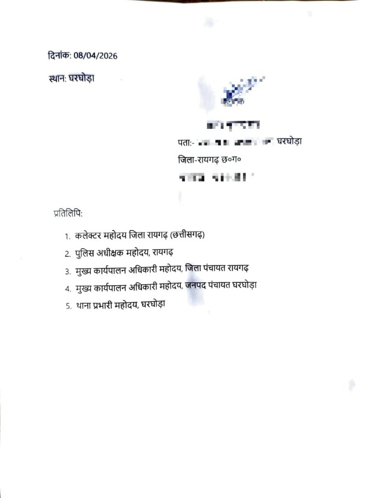 शिकायत में यह भी उल्लेख किया गया है कि इस मामले में पूर्व में भी अनुविभागीय अधिकारी (राजस्व) घरघोड़ा को आवेदन दिया जा चुका है, लेकिन अब तक कोई ठोस कार्रवाई नहीं हुई है।