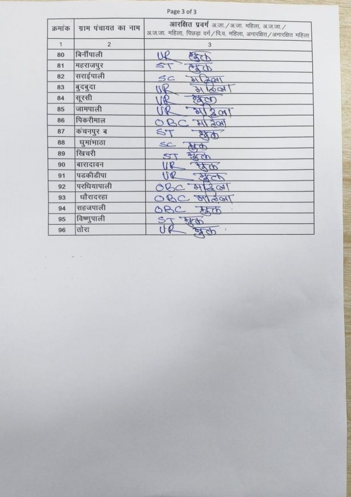 सारंगढ़ बिलाईगढ़ - जनपद पंचायत बरमकेला सरपंच की आरक्षण सूची
