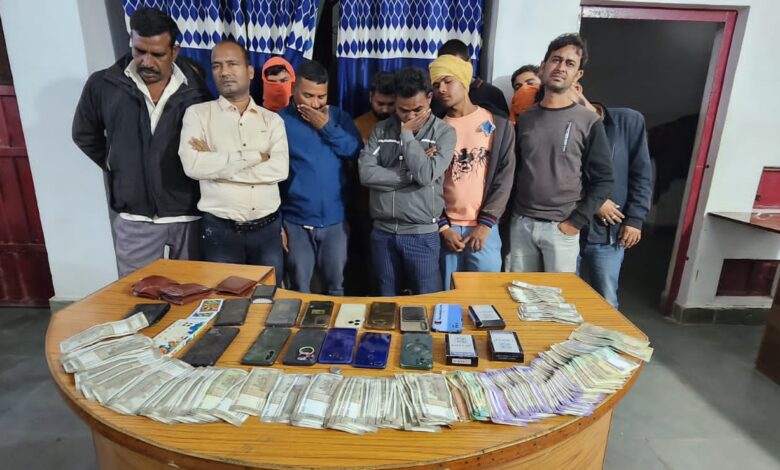 गिरफ्तार आरोपी – 01. वादिर खान पिता राशीद खान उम्र 45 साल 02. निरंकार तंबोली पिता स्व श्री मानिकलाल तंबोली उम्र 40 वर्ष 03. धमेंद्र पटेल पिता श्री सीताराम पटेल उम्र 43 वर्ष 04. जीत्तू पाटले पिता मुन्नालाल पाटले उम्र 32 वर्ष 05. प्रमोद कुमार कहरा पिता स्व श्री भरतलाल कहरा उम्र 49 वर्ष 06.विक्की जायसवाल पिता मनीराम जायसवाल उम्र 20 साल 07.लक्ष्मी प्रसाद सारथी पिता अंजोरा राम सारथी उम्र 42 साल 08.संकेत तिवारी पिता दुर्गा प्रसाद तिवारी उम्र 32 साल 09.गोलू राज पिता गणेश प्रसाद गोड उम्र 28 साल 10. सत्यपाल सोनी पिता आर.पी.सोनी उम्र 38 साल 11ण्संजय यादव पिता विजय यादव उम्र 36 साल 12. संजय कुमार पिता मानिक लाल सोनी उम्र 45 साल 13. हकीम मोहम्मद पिता सुअराती मोहम्मद उम्र 42 साल सभी निवासी रतनपुर थाना रतनपुर जिला बिलासपुर छ.ग.