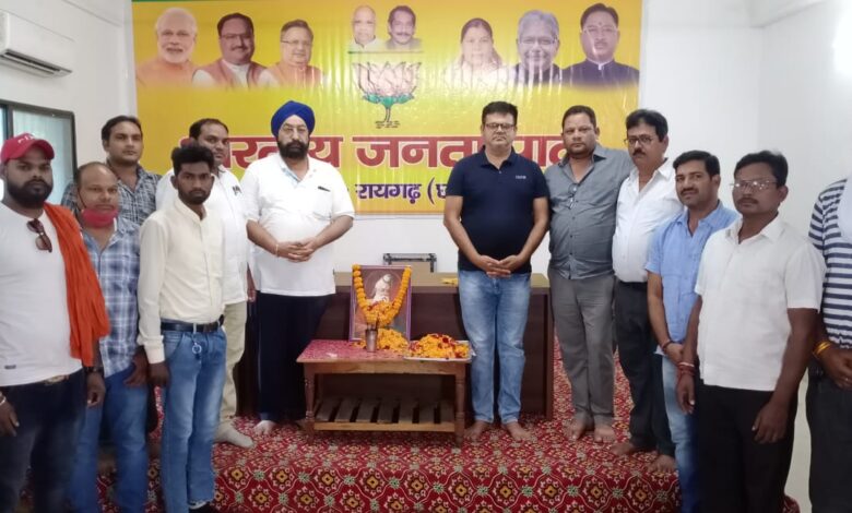 रायगढ़:- आज दिनांक 20/10/2021 को भाजपा कार्यालय रायगढ़ में सभी भाजपाइयों ने महर्षि वाल्मीकि जी की जयंती कार्यक्रम आयोजित किये जिसमे वरिष्ट भाजपा कार्यकर्ताओं ने अपना अपना विचार महर्षि वाल्मीकि जी की जयंती में व्यक्त किये। कार्यक्रम में उपस्थित भाजपा प्रदेश कार्य समिति सदस्य गुरुपाल भल्ला,भाजपा जिलाध्यक्ष उमेश अग्रवाल,जिला उपाध्यक्ष कौशलेश मिश्रा,जिला मंत्री विलिष गुप्ता,अनुसूचित जाति मोर्चा प्रदेश कार्य समिति सदस्य सावन चौहान एवं राकेश रात्रे,