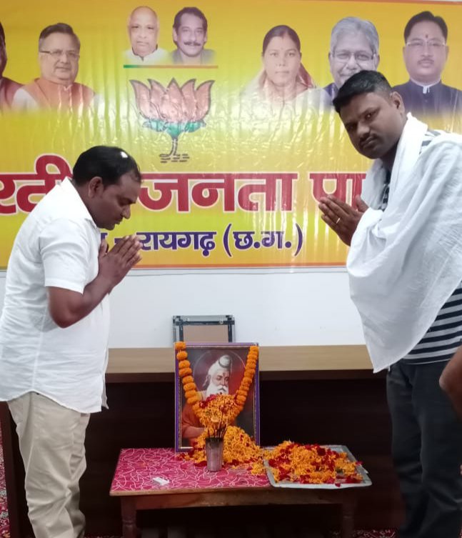 आज अनु.जाति मोर्चा जिला रायगढ़ के द्वारा जिला भाजपा रायगढ़ कार्यालय में महर्षि वाल्मीकि जी जयंती कार्यक्रम संपन्न हुआ…