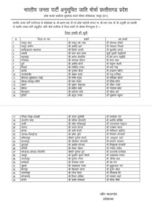 रायपुर। छत्तीसगढ़ बीजेपी ने अनुसुचित जाति मोर्चा के पदाधिकारियों की सूची जारी की है. इसमें संभाग प्रभारी और जिला प्रभारियों की नियुक्ति की गई है. BJP प्रदेशाध्यक्ष अरूण साव और प्रदेश महामंत्री संगठन पवन साय की अनुमति से प्रभारियों की घोषणा की गई है.