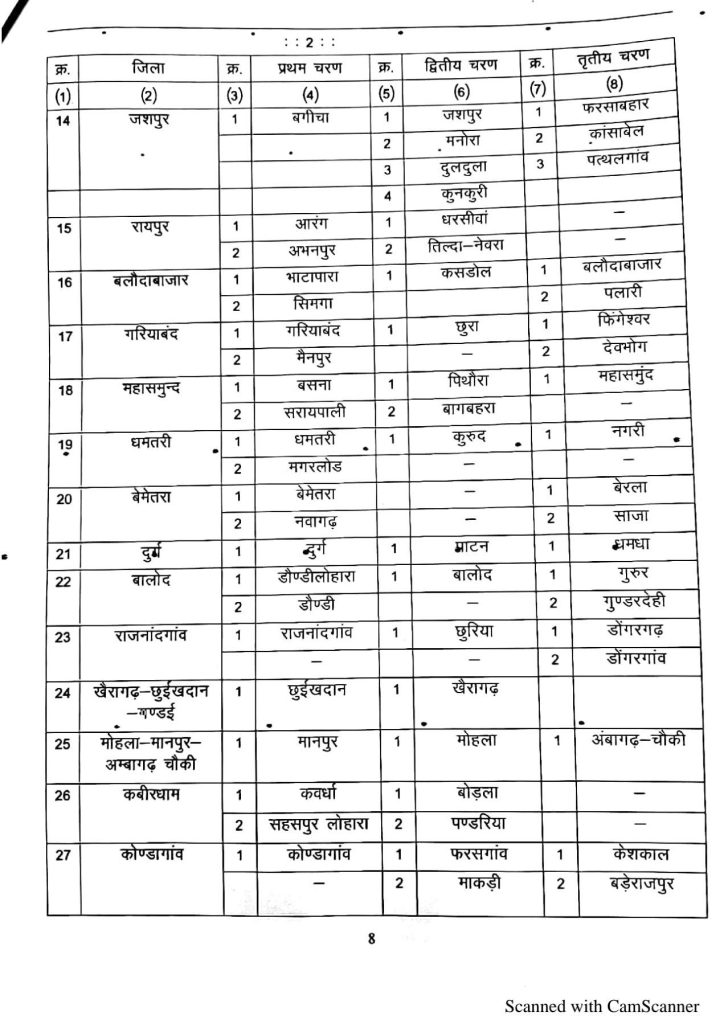 नगरीय निकाय का चुनाव एक चरण में किया जायेगा। ग्रामीण क्षेत्र के निकाय तीन चरणों में चुनाव होंगे। नगरीय निकाय की चुनाव की प्रकिया 22 जनवरी को अधिसूचना जारी होगी। उसी दिन से नामांकन शुरू हो जायेगा। 22 से शुरू नामांकन, वापसी की अंतिम 31 जनवरी और 11 फरवरी को शहरी क्षेत्र में चुनाव होगा। 15 फरवरी को मतगणना होगा। वहीं पंचायत चुनव 17 फरवरी, 20 फरवरी और 23 फरवरी को चुनाव होगा।