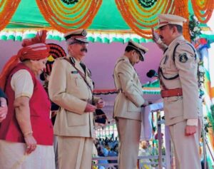 रायपुर। 26 जनवरी गणतंत्र दिवस के अवसर पर पुलिस परेड़ ग्राउण्ड रायपुर में महामहिम राज्यपाल महोदया सुश्री अनुसुईया उइके के द्धारा ध्वजारोहण किया गया। इस गरिमामयी कार्यक्रम के दौरान पुलिस अधीक्षक सारंगढ़-बिलाईगढ़ राजेश कुकरेजा (भा.पु.से.) को सराहनीय सेवा पदक से महामहिम राज्यपाल के द्वारा अलंकृत किया गया। श्री कुकरेजा एसटीएफ बघेरा, दुर्ग में पदस्थापना के दौरान 246 नक्सली ऑपरेशन चलाया, इन ऑपरेशन के दौरान इंसास एलएमजी 01, एके 47-01, एसएलआर-08, इंसास-06, 303 रायफल- 03, 9 एमएम पिस्टल 03 एवं 51 एमएम मोर्टार 01 नग बरामद किया गया। सराहनीय सेवा पदक से अलंकृत पुलिस अधीक्षक श्री राजेश कुकरेजा (भा.पु.से.) ने छत्तीसगढ़ राज्य को गौरवान्वित किया इै। परिणाणाय साधूनाम के मूल मंत्र से प्रेरित पुलिस के लिए ये पदक प्रेरणास्त्रोत है। भारत के माननीय महामहिम राष्ट्रपति द्वारा की गई घोषणा के अनुरूप आज माननीय महामहिम राज्यपाल छत्तीसगढ़ अपने कर कमलों से पुलिस अधीक्षक सारंगढ़-बिलाईगढ़ श्री राजेश कुकरेजा (भा.पु.से.) को सराहनीय सेवा पदक प्रदान कर उन्हें अलंकृत किया।