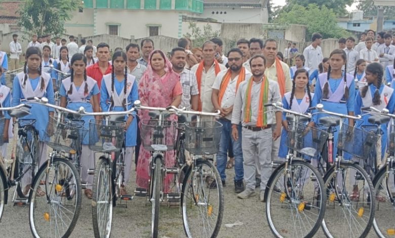 हाई स्कूल उच्चभीट्ठी में नवमीं कक्षा के बच्चों को सायकल वितरण किया गया