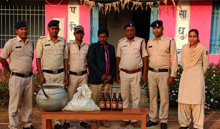 सारंगढ़:- पुलिस अधीक्षक एवं अतिरिक्त पुलिस सारंगढ़ – बिलाईगढ़ के आदेशानुसार तथा अनुविभागीय अधिकारी सारंगढ़ (पुलिस) के निर्देशन पर, अवैध जुआ सट्टा शराब रेट कार्यवाही हेतु निर्देश प्राप्त हुआ है इसी क्रम में दिनांक 31. 10. 2022 को ग्राम भ्रमण एवं अवैध शराब रेट कार्यवाही पर देहात रवाना हुआ था इसी दौरान मुखबिर की सूचना पर ग्राम बरभाठा में आरोपी रामकुमार जोल्हे पिता देशराम उम्र 46 वर्ष शाकिन परसापाली थाना सिघोडा जिला महासमुन्द से हाथ भट्टी कच्ची महुआ शराब एवं बीयर बिक्री करते पकड़े जाने पर से आरोपि के विरुद्ध अपराध धारा 34(2), 59 (क)आबकारी एक्ट कायम कर विवेचना में लिया गया ।