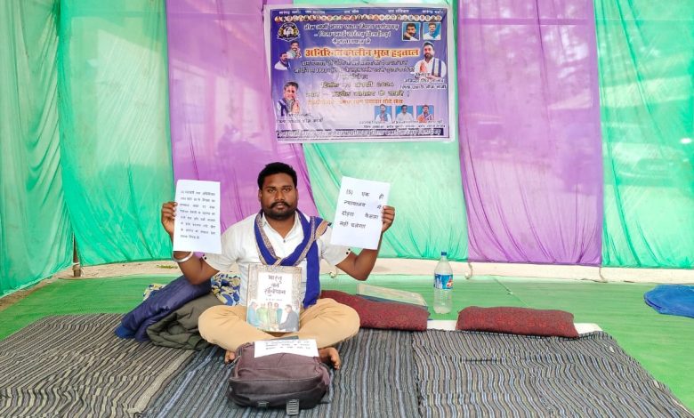 एक दलित युवक 3 दिनों से बैठा भूख हड़ताल पर, प्रशासन ने अब तक नही लिया युवक का सुध..