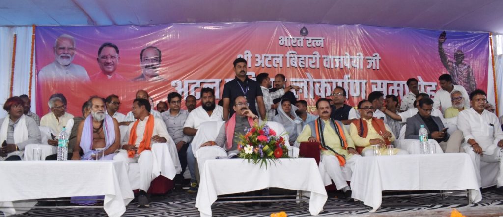 केंद्र की मोदी सरकार और राज्य की विष्णुदेव सरकार की उपलब्धियों का उल्लेख करते हुए कहा कि पीएम मोदी ने गरीबों को 5 किलो मुफ्त अनाज दे रही वही सीएम विष्णु देव साय महतारी वंदन योजना से एक हजार रुपए महिलाओं को दे रही है।