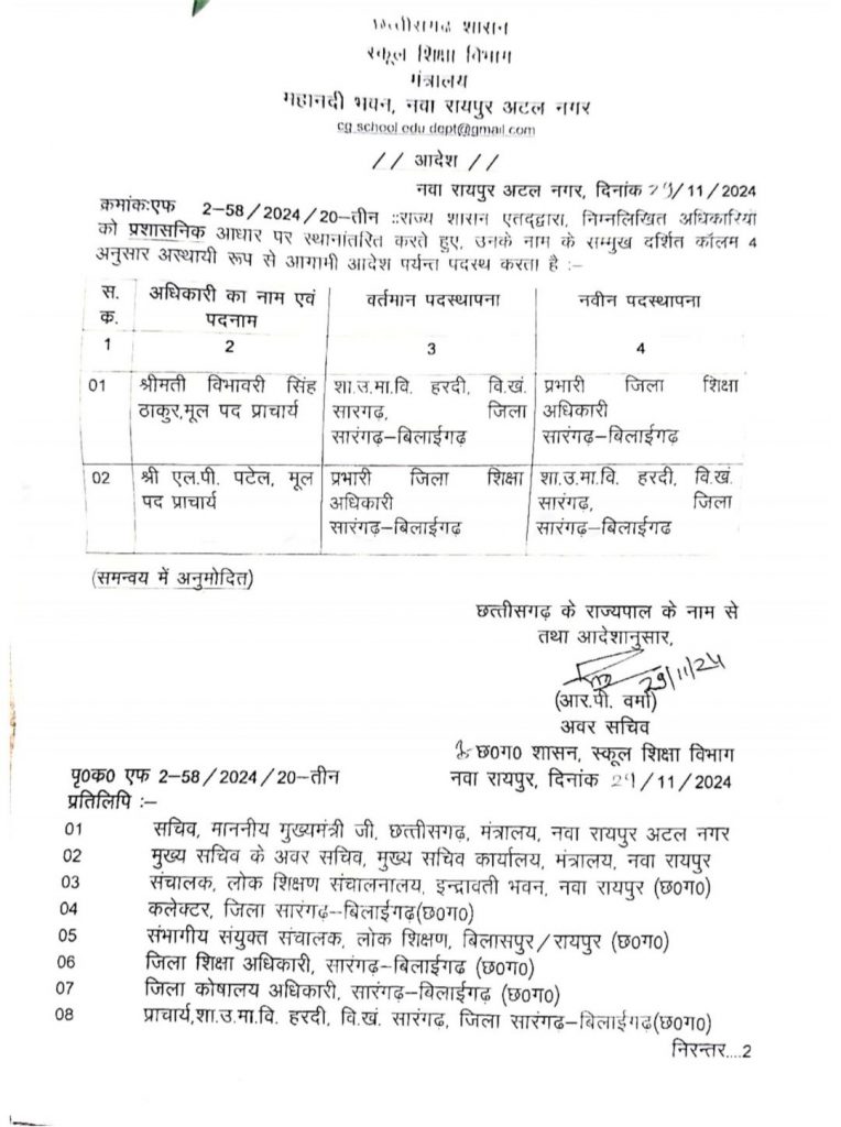 बिग ब्रेकिंग – सारंगढ़ बिलाईगढ़ का जिला शिक्षा अधिकारी हटाए गए शिक्षा विभाग ने जारी किया आदेश।