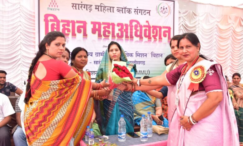 छ. रा. ग्रा. आ. मिशन बिहान अंतर्गत हमारे द्वारा गाँव-गाँव में महिलाओं को समूह से जोड़ा जाता है। वर्तमान में सारंगढ़ जनपद पंचायत अंतर्गत लगभग 50000 महिलाओं का समूहों में जोड़ा जा चुका है, जो कि लगभग 150 ग्राम संगठनो के अंतर्गत 4 संकुल संगठनो में जुड़े हमारे बिहान अंतर्गत समूहो को चक्रिय निधी, समुदायिक निवेश, बैंक लोन, आपात कालीन निधी, जीवन व दुर्घटना बीमा, आजीविका हेतु विभिन्न बैंको से लिंकेज करवाकर कम व्याज दर पर उद्यमी लोन देकर महिलाओ को सशक्त बनाना, सामाजिक आर्थिक शैक्षणिक व संस्कृतिक रूप में सशक्त किया जा रहा है। बिहान महाअधिवेशन अर्न्तगत बिहान महिला सम्मेलन के आयोजन का उदेश्य बिहान के सहयोग से होने वाले महिला सशक्तिकरण को बताना है एवं कैसे आज महिलाओ को आगे आकर विभिन्न अजीविका कर व गोठानो में आजिविका कर आगे बढ़कर अपने परिवार की सुख समृद्धि में योगदान दे रही है, और निश्चित ही ये और आगे अपनी अपनी मंजिलो की प्राप्ति अवश्य करेंगे। विहान समूहों की महिलाओ ने मेला में स्टाल लगाकर अपनी पहचान बनाई ।लोगों ने खूब प्रसंसा किए । कार्यक्रम में सारंगढ विधायक श्रीमती उत्तरी गनपत जांगडे ,श्रीमती पद्मा घनश्याम मनहर अनुसूचित जाति महिला आयोग उपाध्यक्ष ,नगर पालिका अध्यक्ष सोनी बंजारे ,