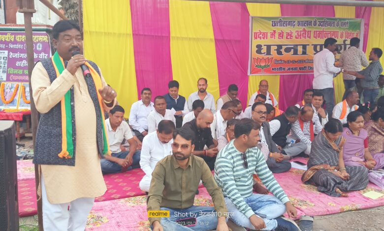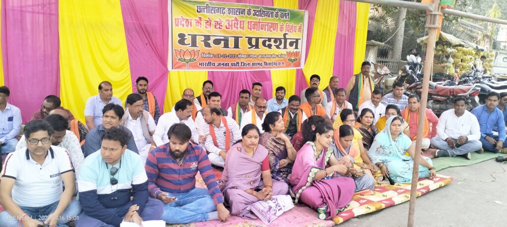 सारंगढ़:- भारतीय जनता पार्टी ने छत्तीसगढ़ शासन के ऊपर आरोप लगाते हुए छत्तीसगढ़ शासन के उदासीनता के चलते प्रदेश में हो रहे अवैध धर्मांतरण के विरोध में एक दिवसीय धरना प्रदर्शन किया है ,वही छत्तीसगढ़ शासन द्वारा 31 जिलों में रासुका कानून लागू किया आदिवासियों को उत्पीड़ित करने के उद्देश्य और धर्मांतरण के विरोध में जो आंदोलन चलाया जा रहा था उसे कुचलने के लिए और आदिवासी समाज को उनकी संस्कृति को नष्ट करने के लिए भूपेश सरकार ने राज्य सुरक्षा कानून लगाया है भारतीय जनता पार्टी इसका विरोध करती है