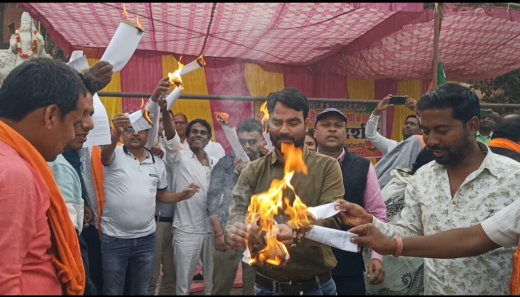 भारतीय जनता पार्टी ने विरोध जताते हुए भारत माता चौक सारंगढ़ में धरना प्रदर्शन पर बैठा, और रासुका की प्रतियां जलाई।