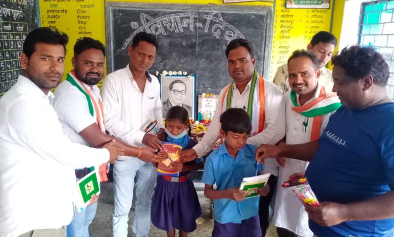 ब्लॉक कांग्रेस अनुसूचित जाति अध्यक्ष बिनोद भारद्वाज, रमेश खूंटे एवं जनपद सदस्य नरेश चौहान,सुखराम खूंटे ने बच्चों के साथ मनाया संविधान दिवस