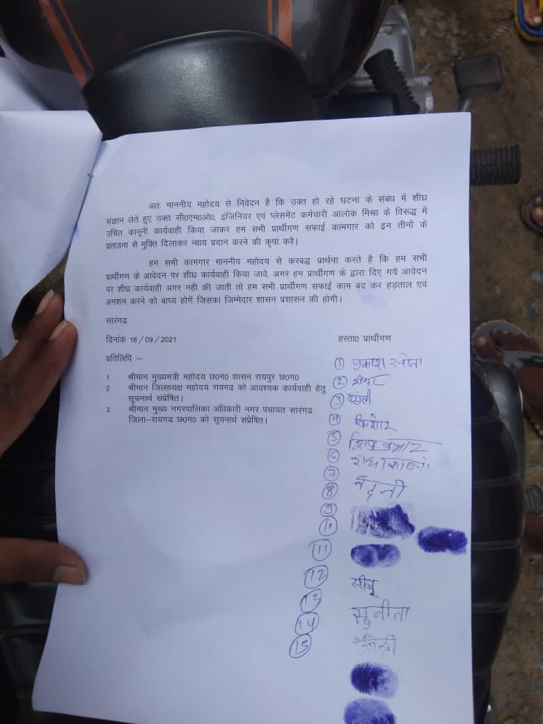 ब्रेकिंग सारंगढ़: नगरपालिका सारंगढ सीएमओ संजय सिंह, इंजिनियर तारकेश्वर नायक एवं प्लेसमेंट कर्मचारी आलोक मिश्रा के प्रताड़ना से तंग होकर समस्त सफाई कर्मचारी उतरे सड़क पर….! सारंगढ़ एसडीएम के बंगले के पास हुवे इकट्ठे…सफाई कामगारों ने कमबन्द, हड़ताल और अनशन करने की दी चेतावनी…