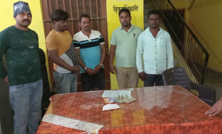 सारंगढ़ बिलाईगढ़ :-पुलिस अधीक्षक एवं अतिरिक्त पुलिस सारंगढ़ – बिलाईगढ़ के आदेशानुसार तथा अनुविभागीय अधिकारी बिलाईगढ़ (पुलिस) के निर्देशन पर, अवैध गतिविधियों में संलिप्त व्यक्तियों पर विशेष निगरानी रख कर आवश्यक कार्यवाही हेतु निर्देश प्राप्त हुआ है इसी क्रम में दिनांक 30 ,10, 2022 को मुखबिर की सूचना पर ग्राम बेलटीकरी में रुपए पैसे का दावा लगा कर काट पत्ती नमक जुआ खेल रहे हैं की सुचना पर रेड कार्यवाही कर रंगे हांथ पकड़ा गया। आरोपीयान (1) उमेश कर्ष पिता इंदल कर्ष उम्र 34 वर्ष साकिन बेलटीकरी (2) नंद कुमार कर्ष पिता दयाराम उम्र 40 वर्ष साकिन बेलटीकरी (3) ईश्वर साहू पिता फगुराम साहू उम्र 33 वर्ष साकिन डूरूमगढ़ (4) खोशराम साहू पिता रामधन साहू उम्र 30 वर्ष साकिन बेलटीकरी थाना बिलाईगढ़ जिला सारंगढ़ बिलाईगढ़ के कब्जे से व फड़ से नकदी रकम 2700 रू एवं 52 पत्ती तास को मुताबिक जब्ती पत्रक समक्ष गवाह के जप्त कर आरोपीयो के विरुद्ध अपराध क्र. 275/22 धारा 13 जुआ एक्ट के तहत विधिवत गिरफ्तार कर जमानत मुचलका पर रिहा किया गया ।