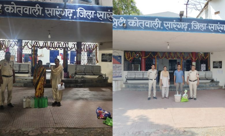 सारंगढ़ बिलाईगढ़ – पुलिस अधीक्षक पुष्कर शर्मा, अति0 पुलिस अधीक्षक श्रीमती निमिषा पांडेय एवं एसडीओपी श्रीमती स्नेहिल साहू के द्वारा लगातार शराब में संलिप्त व्यक्तियों पर कार्यवाही हेतु निर्देशित करने पर थाना सिटी कोतवाली प्रभारी निरीक्षक कामिल हक़ के मार्ग दर्शन में थाना सिटी कोतवाली सारंगढ़ के टीम द्वारा अवैध शराब पर रोक लगाने हेतु मुखबिर सूचना पर आरोपीगण के विरूद्व आबकारी अधिनियम के तहत निम्न कार्यवाही किया गया-