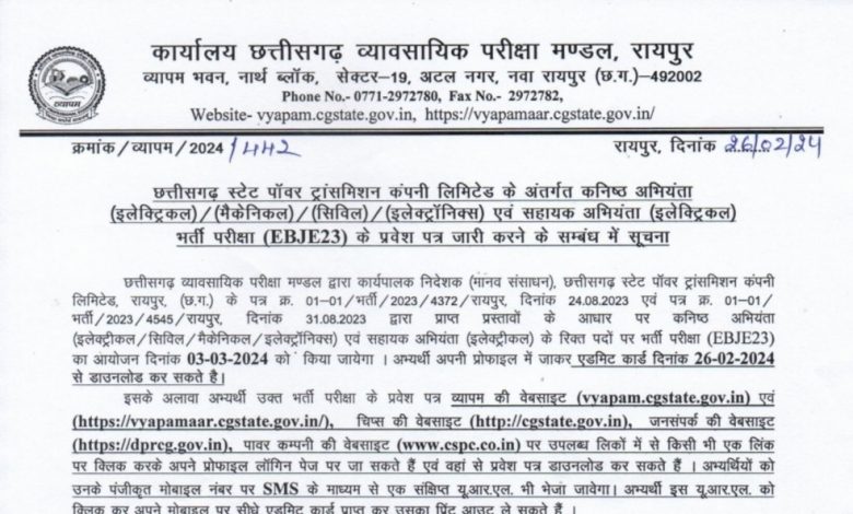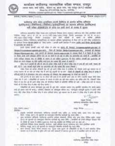 सारंगढ़ बिलाईगढ़ – 2 मार्च 2024/छत्तीसगढ़ सरकार के आदिम जाति और अनुसूचित जाति विकास विभाग ने छात्रावास अधीक्षक श्रेणी द के भर्ती के लिए सीजी व्यापम की वेबसाइट में निशुल्क ऑनलाइन आवेदन 31 मार्च 2024 तक आमंत्रित किया है। ऑनलाइन आवेदन के लिए वेबसाइट https://vyapam.cgstate.gov.in/ में सुविधा 1 मार्च से प्रारंभ हुआ है। राज्य के 32 जिला मुख्यालय में परीक्षा केंद्र निर्धारित है।