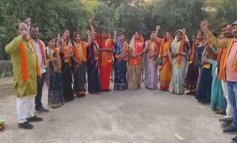 महिला मोर्चा के जिला अध्यक्ष वैजयंती नंदू लहरें का भव्य स्वागत।