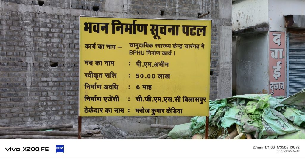 सामुदायिक स्वास्थ्य केंद्र सारंगढ़ में BPHU निर्माण कार्य, में भारी धांधली?