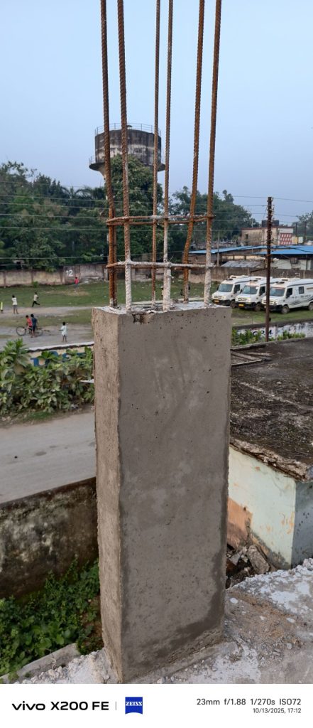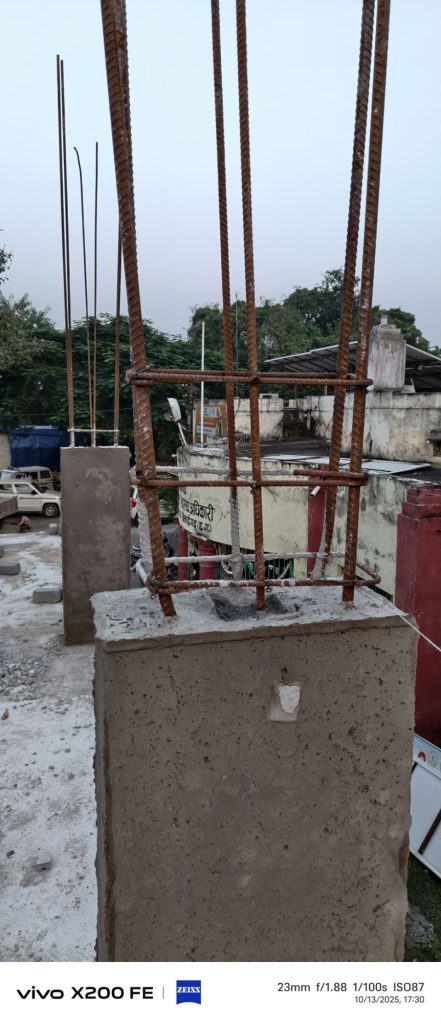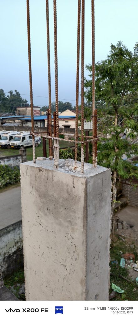 – ऊपरी हिस्से में 12mm छड़ में 16mm छड़ जोड़कर पूरा कॉलम 16mm से बना दिखाने की कोशिश की गई है।
