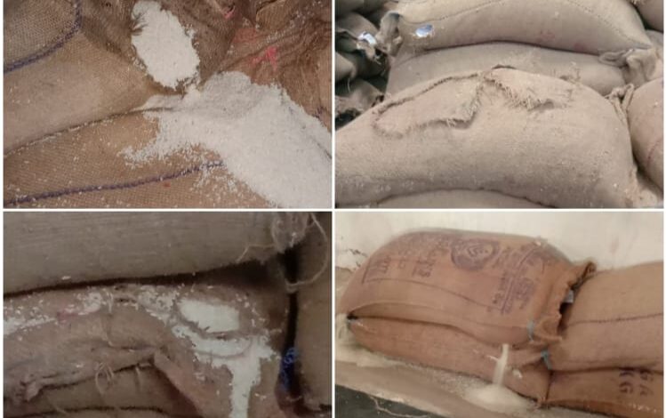 चावल को खराब फटा बरदाना में रखने पर चावल हो रहे खराब,,दर्जनों अधिकारी चुप्पी साधे बैठे हैं या मुंह में भरा है मलाई,जिसकी स्वाद से फटा हुआ बोरा नहीं पड़ रहा दिखाई!