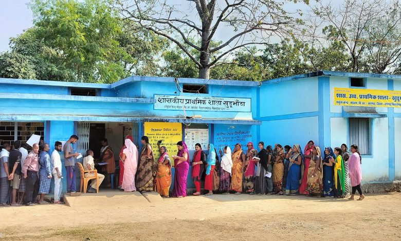मतदान केंद्र क्रमांक 82 पोलिंग बूथ खुडूभाठा में मतदाता धुप से परेशान, छांव की चाह में आस पास निहारते नजर आये…