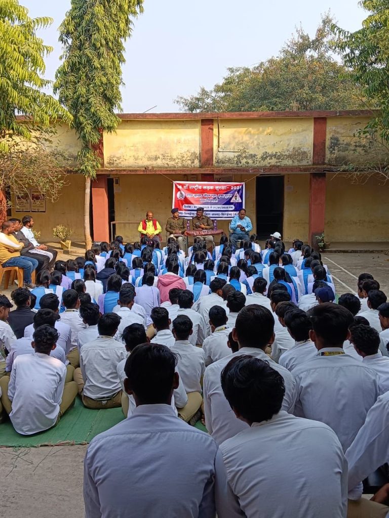 कोसीर। जिला सारंगढ़ बिलाईगढ़ में पुलिस अधीक्षक महोदय सारंगढ़ बिलाईगढ़ के आदेशानुसार अतिरिक्त पुलिस अधीक्षक महोदया एवं पुलिस अनुविभागीय अधिकारी सारंगढ के मार्ग निर्देशन में 36 वां सड़क सुरक्षा माह जागरूकता अभियान चलाया जा रहा है जिसके तारतम्य में आज दिनांक 06.01.2025 को कोसीर पुलिस द्वारा शासकीय उच्चतर माध्यमिक विद्यालय कोसीर में 36 वां सड़क सुरक्षा माह जागरूकता कार्यक्रम रखा गया जिसमे संस्था के प्राचार्य एस0पी0भारती एवं शिक्षक शिक्षिकायें एवं छात्र-छात्रायें उपस्थित हुये जिन्हे थाना प्रभारी एन एल राठिया द्वारा अपने स्टाप के साथ जाकर जनता को सड़क सुरक्षा व यातायात नियमों के महत्व के प्रति जागरूक करने हेतु पहल किया गया एवं छात्र-छात्राओं को समझाईश दिया गया कि यातायात नियमों का पालन करें राडक सुरक्षा सभी की जिम्मेदारी है प्रत्येक नागरिक को इसे गम्भीरता से लेना चाहिये तथा वाहन वलाते समय मोबाईल का उपयोग न करने, दो पहिया वाहन चलाते समय हेल्मेट का उपयोग करने, नशा के हालत मे वाहन न चलाने खतरनाक तरीके से वाहन न चलाने, मालवाहक यान में सवारी न बैठाने हेतु तथा दो पहिया वाहन मे तीन सवारी न बैठाने हेतु आवश्यक समझाइश दिया गया।