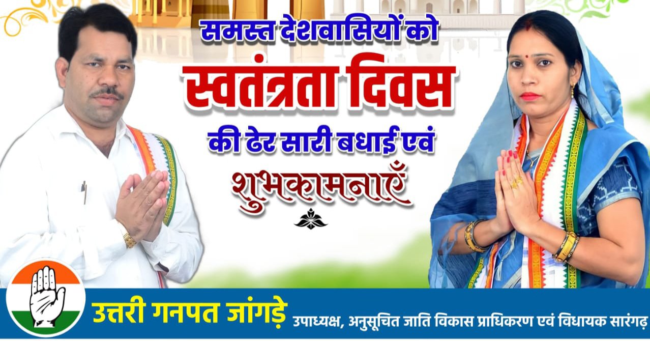 विधायक उत्तरी गणपत जांगड़े:समस्त देशवासियों को 75वाँ स्वतंत्रता दिवस की हार्दिक बधाई शुभकामनाएं।