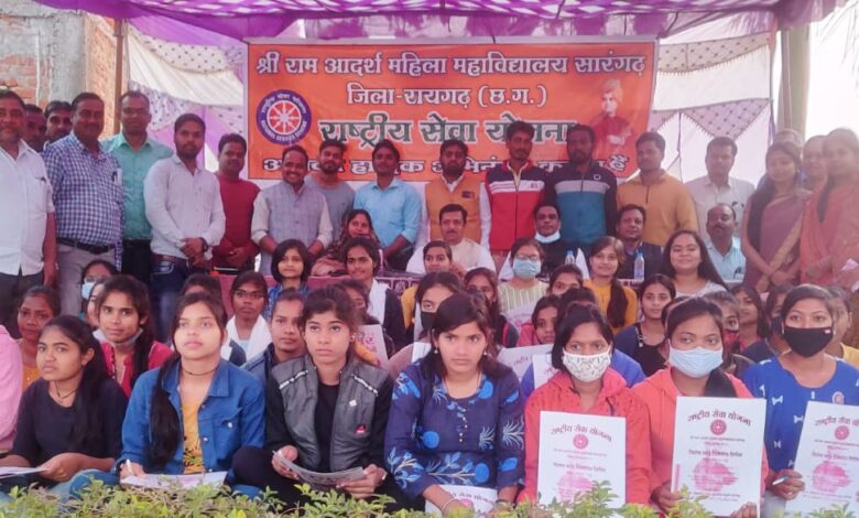 ने स्वागत गीत के साथ अतिथियों का स्वागत अभिनंदन किया। मंच को सर्वप्रथम राकेश पटेल अधिवक्ता अश्वनी चंद्रा ने उद्बोधन किया और सात दिवसीय शिविर की सराहना की। मंच को बतौर अतिथि गोल्डी नायक नवोदित कर मंचासीन अतिथियों और छात्राओं का अभिवादन करते हुए कहा की राष्ट्रीय सेवा योजना को युवाओं में व्यक्तित्व विशाल विकास के लिए आयोजित किया जाता है यह हर साल 24 सितंबर को सन 1969 को इसकी स्थापना की गई थी, इसके प्रमुख उद्देश्य युवा छात्रों को सामुदायिक सेवा के माध्यम से अपने व्यक्तित्व को विकसित करने के लिए अनुभव प्रदान करना है। इसकी मुख्य गतिविधियां शिक्षा साक्षरता स्वास्थ्य परिवार कल्याण स्वच्छता पर्यावरण संरक्षण सामाजिक सेवा कार्यक्रम महिलाओं की स्थिति में सुधार आपदा राहत सामाजिक बुराइयों के प्रति अभियान योग क्रीड़ा एवं सांस्कृतिक कार्यक्रम जैसे कार्यों को सेवा भाव से कैंप और शिविर के माध्यम से जन-जन के बीच पहुंचाना और इस दिशा में अनुशासित रूप से सकारात्मक कार्य करना है कॉलेज में जैसे एनएसएस शिविर लगता था उनके कार्यक्रमों को देखने हम सभी छात्र जाया करते थे उनके द्वारा शिविर स्थल और गांव में उक्त विषयों पर किए गए कार्यों को देखते थे और जब क्रीड़ा और सांस्कृतिक कार्यक्रम होते थे बहुत मस्ती से राष्ट्रीय सेवा योजना का हमने अनुभव किया है आप सभी इस दिशा में सकारात्मक विचारों के साथ आगे बढ़े आने वाले जीवन में इन कार्यों और उद्देश्यों का आपको अवश्य ही लाभ मिलेगा मैं महाविद्यालय के संचालक स्टाफ छात्र-छात्राओं का विशेष आभारी हूं विनोद भारद्वाज जी ने अपने उद्बोधन में कहा कि इसके पूर्व भी हमारे जिला पंचायत क्षेत्र की स्कूल में एनएसएस शिविर में जाने का अवसर मिला था शिविर के माध्यम से छात्रों में सरवान गणित विकास होता है मंच में आती है नवनिर्वाचित पार्षद कमल का निराला चाटू कि उन्होंने जमकर प्रशंसा की और कहा कि जिला पंचायत क्षेत्र में हमारा भी चुनाव चिन्ह दो पत्ति छाप था और चाटू भाई भी दो पत्ती छाप से चुनाव जीते है। उन्होंने कहा की प्रोफेसर स्टाफ छात्रों की मेहनत की हम सराहना करते हैं अंतिम में श्रीमती अनीका विनोद भारद्वाज ने कहा कि सभी अतिथियों और छात्राओं का अभिवादन करते हुए कहा की आप सभी को सर्वप्रथम क्रिसमस की शुभकामनाएं आपके द्वारा शिविर में सात दिवस तक जनहित पर्यावरण से जुड़े कार्य किए जाएंगे मैं आप सभी को बधाई प्रेषित करती हूं। मंच का सफल संचालन संजय चंद्रा सर ने किया।