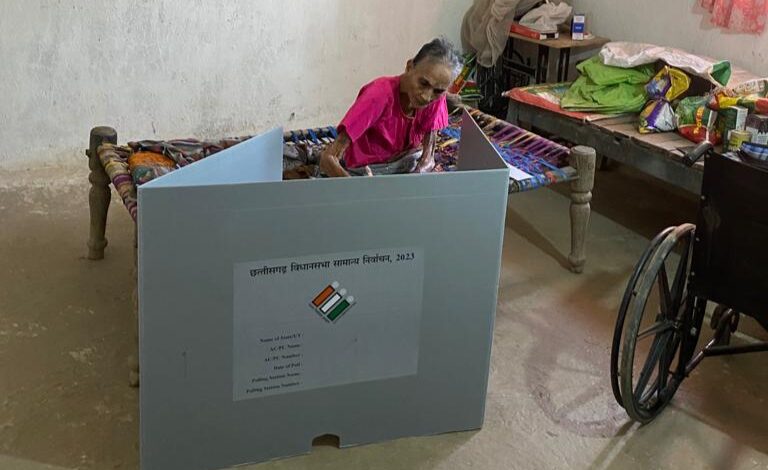 सारंगढ़-बिलाईगढ़, 6 नवंबर 2023 / विधानसभा क्षेत्र क्रमांक 17 सारंगढ़ एवं विधानसभा क्षेत्र क्रमांक 43 बिलाईगढ़ के 80 वर्ष से अधिक आयु के वृद्धजन एवं दिव्यांगजन डाक मतपत्र से मत देकर लोकतंत्र के निर्माण में सहभागी बन रहे हैं। भारत निर्वाचन आयोग द्वारा 80 वर्ष से अधिक आयु वर्ग के मतदाताओं के लिए इस वर्ष डाक मतपत्र की सुविधा प्रदान की गई है, जिसके अंतर्गत वृद्धजन और दिव्यांग मतदाताओं को विशेष तौर पर सुविधा मिल रही है। सारंगढ़ विधानसभा क्षेत्र क्रमांक 17 के रूट क्रमांक 10, पेटी नंबर 10 के वयोवृद्ध मतदाताओं ने डाक मत पत्र के माध्यम से अपने मताधिकार का प्रयोग किया‌। इसी प्रकार बिलाईगढ़ विधानसभा क्षेत्र क्रमांक 43 के रूट क्रमांक 05 और रूट क्रमांक 16 के वयोवृद्ध मतदाताओं ने डाक मत पत्र के माध्यम से अपने मताधिकार का प्रयोग किया। सारंगढ़ एवं बिलाईगढ़ दोनों ही विधानसभा क्षेत्र में कुल 9-9 प्रत्याशी चुनाव मैदान में हैं, जिन्हें मतदाताओं ने 6 नवंबर को डाक मतपत्र के माध्यम से चुनाव चिह्न देखकर अपने पसंदीदा प्रत्याशी को मतदान किया। इस बार भारत निर्वाचन आयोग ने डाक मतपत्र की सुविधा दी है। वयोवृद्ध एवं दिव्यांगजनों ने आयोग द्वारा दी गई इस सुविधा के प्रति आभार व्यक्त किया।