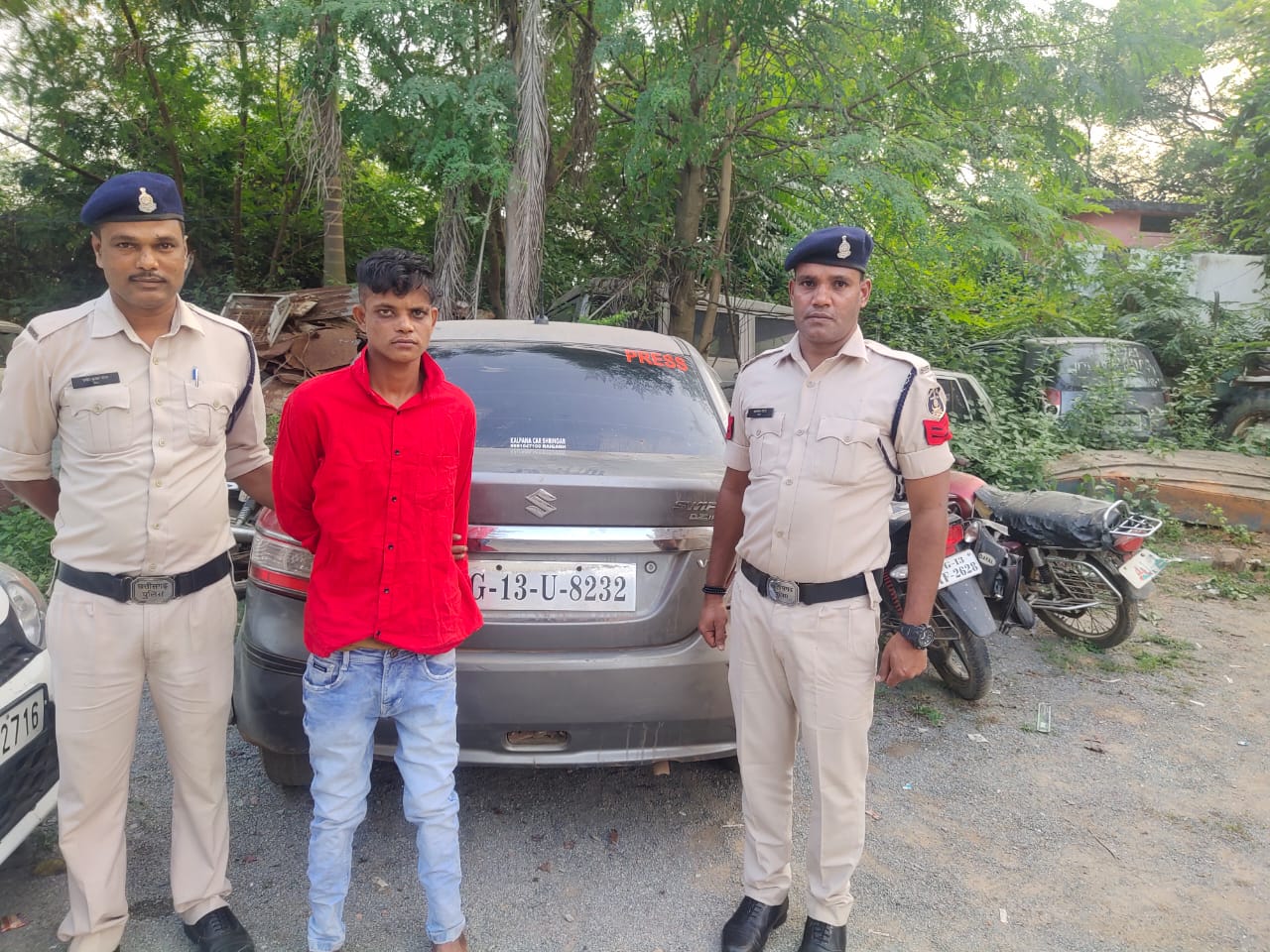 सारंगढ़:- दिनांक 30/9/2022 को थाने में सूचना प्राप्त हुई की ग्राम चिखली ओवर ब्रिज के नीचे एक स्विफ्ट वाहन द्वारा बुजुर्ग दंपत्ति को एक्सीडेंट कर दिया गया है सूचना पर थाना प्रभारी विजय चौधरी स्टाफ के साथ घटनास्थल को रवाना हुएl जहां मौके पर पाया कि वाहन क्रमांक सीजी 13 यू 8232 के वाहन चालक ने तेजी और लापरवाही से गाड़ी चला कर नशे की हालत में बुजुर्ग दंपत्ति की झोपड़ी में ही स्विफ्ट वाहन को चढ़ा दिया जिससे झोपड़ी में रह रहे लालू राम चौहान पिता दयाराम चौहान उम्र 65 वर्ष की मौके पर ही मृत्यु हो गई। घटना कारीत करने के बाद चालक अपने वाहन को लेकर फरार हो गया। पुलिस टीम द्वारा मृतक के शव को ससम्मान जिला अस्पताल पहुंचाया गया। मौके पर उपस्थित प्रत्यक्षदर्शियों से पूछताछ पर पता चला कि वाहन को घोठला बड़े निवासी गुपेश पटेल चला रहा था जानकारी मिलते ही तत्काल पुलिस टीम घोटला बड़े रवाना हुई जहां आरोपी पुलिस को देखकर गाड़ी समेत भागने का प्रयास करने लगा जिसे पीछा कर पुलिस टीम द्वारा पकड़ा गया। आरोपी को हिरासत में लेकर थाना सारंगढ़ लाया गया जहां प्रार्थी दरस राम चौहान निवासी चिखली की रिपोर्ट पर गैर जमानती धारा 304 भादवी 185 मोटर व्हीकल एक्ट का अपराध दर्ज कर विवेचना में लिया गया एवं आरोपी गुपेश पटेल पिता कामतानाथ पटेल उम्र 19 वर्ष निवासी घोटला बड़े थाना सारंगढ़ को गिरफ्तार कर न्यायिक रिमांड पर जेल भेजा गया है।