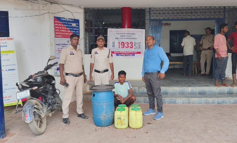 सारंगढ़ बिलाईगढ़ – पुलिस अधीक्षक आँजनये वार्ष्णेय, अति0 पुलिस अधीक्षक श्रीमती निमीषा पाण्डेय एवं एसडीओपी श्रीमती स्नेहिल साहू के द्वारा अवैध शराब बिक्री पर रोकथाम हेतु लगातार निर्देशित किये जाने पर थाना प्रभारी कोतवाली निरीक्षक कामिल हक के कुशल मार्ग दर्शन में थाना सिटी कोतवाली सारंगढ़ के पुलिस स्टाफ के द्वारा अवैध शराब बिक्री करने वाले व्यक्ति के विरूद्ध कार्यवाही की गई।अप0क्रं0 355/2025 धारा- 34(2),59(क) आबकारी एक्ट में दिनांक- 20.07.2025 को जरिये मुखबिर सूचना मिला कि ग्राम फर्सवानी में नदी किनारे खरदरहाखार में भारी मात्रा में अवैध शराब बिक्री करने हेतु रखा है कि सूचना पर हमराह स्टाफ एवं गवाहान के घटना स्थल ग्राम फर्सवानी नदी किनारे खरदरहाखार पहुंच कर घेराबंदी कर रेड कार्यवाही किये जिसमे मौके पर आरोपी शनी कुमार खड़िया निवासी फर्सवानी मिला व अन्य दो आरोपी फरार हो गये तथा जिसके कब्जे से 04 नग पीला कलर की प्लास्टिक डिब्बा 15 लीटर क्षमता वाली में भरी हुई 60 लीटर एवं नीला कलर के प्लास्टिक डिब्बा 50 लीटर क्षमता वाली में 50 लीटर हाथ भटटी कच्ची महुआ शराब कुल 110 लीटर किमती 22000 रू0 को गवाहों के समक्ष मुताबिक जप्ती पत्रक के जप्त कर कब्जा पुलिस लिया गया मामला अजमानतीय होने से आरोपी शनी कुमार खड़िया विधिवत गिरफ्तार कर न्यायिक रिमाण्ड पर भेजा गया। दो अन्य फरार आरोपी का पता तलाश किया जा रहा है