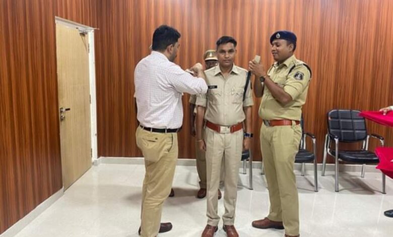 सारंगढ़ पुलिस टीकाराम खटकर को लगे पद्दोन्नति स्टार।