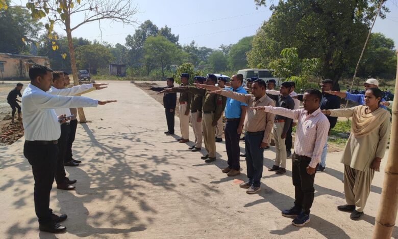 सारंगढ़:- संविधान दिवस के उपलक्ष्य में पुलिस अधीक्षक कार्यालय जिला सारंगढ़ बिलाईगढ़ में पुलिस अधीक्षक राजेश कुकरेजा द्वारा अतिरिक्त पुलिस अधीक्षक महेश्वर नाग, उप पुलिस अधीक्षक मनीष कुंवर की उपस्थिति में कार्यालय एवं रक्षित केंद्र के उपस्थित बल को संविधान की रक्षा की शपथ दिलाते हुए संविधान की प्रस्तावना का वचन किया गया। इस दौरान पुलिस अधीक्षक द्वारा संविधान में प्राप्त अधिकारों की जानकारी विस्तृत रूप से बताई गई साथ ही संविधान में उल्लेखित कर्तव्यों के निर्वहन के लिए दृढ़ संकल्पित रहने की शपथ दिलाई गई।