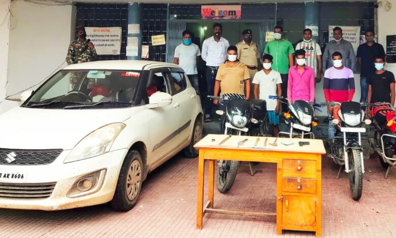 मौके से एक स्वीफ्ट कार सीजी 12 AK- 8606 जिसके पीछे मीडिया लिखा है एवं दुपहिया की जप्ती की गई । सभी थानाक्षेत्र के आदतन बदमाश हैं, जिनका चोरी का रिकार्ड है। पूछताछ में जानकारी सही साबित हुई सभी डकैती की तैयारी के साथ इक्ट्टा हुये थे ।