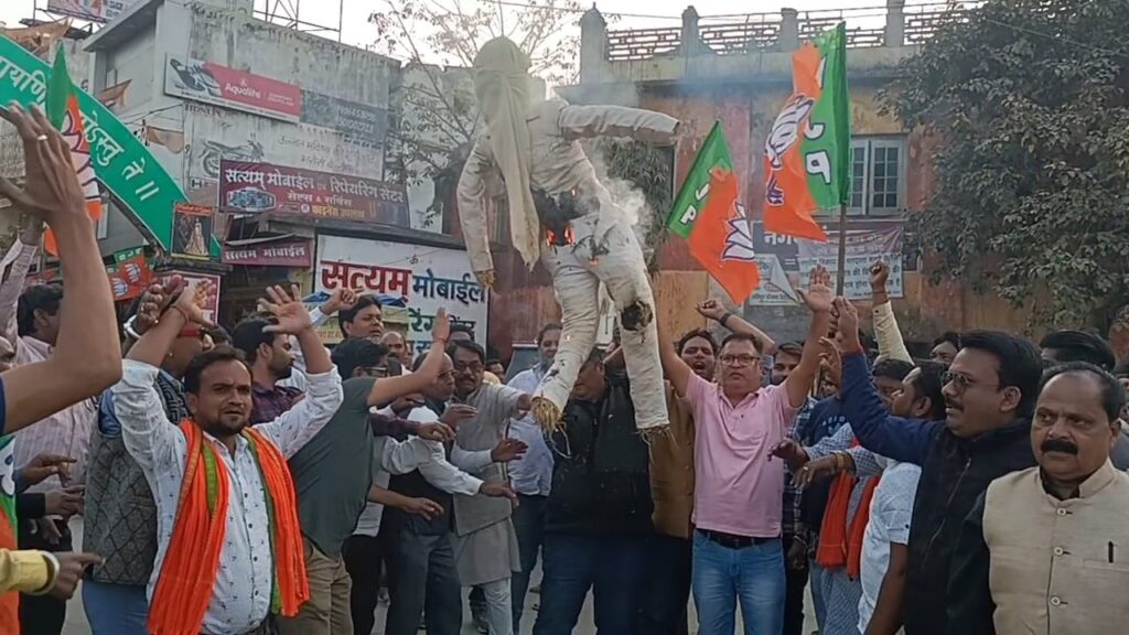 सारंगढ़:- भाजपा कार्यकर्ताओं ने गगनभेदी नारे लगाते हुए भाजपा नेताओं ने बताया कि यूनाइटेड नेशन में पाकिस्तान के द्वारा दिए गए गैर जिम्मेदार और अभद्र बयान के विरोध में आज पाकिस्तान और उनके विदेश मंत्री बिलावल भुट्टो का पुतला दहन किया जा रहा है आज पूरे विश्व में नरेंद्र मोदी विश्व नेता के रूप में जाने जा रहे हैं जो कि भारत देश के लोकप्रिय प्रधानमंत्री भी हैं उन पर की गई अभद्र टिप्पणी को कोई भी देशवासी स्वीकार नहीं करेगा उस अभद्र टिप्पणी से नाराज होकर भाजपा कार्यकर्ताओं ने आज भारत माता चौक पर बिलावल भुट्टो व पाकिस्तान का पुतला जलाया तथा पाकिस्तान के खिलाफ जमकर नारेबाजी की इस अवसर पर जिला भाजपा के पदाधिकारी गण पूर्व नगरपालिका उपाध्यक्ष अमित अग्रवाल , अरविंद हरिप्रिय ,दीनानाथ खूंटेज्योति पटेल, भुवन मिश्रा मयूरेश केसरवानी अजय गोपाल सत्येंद्र बारगाह, हरिनाथ खूंटे, प्रकाश अग्रवाल ,संगीत सिंह ठाकुर ,मनोज लहरे, देवकुमारी, दुर्गा सिंह, कामदा जोल, टार्जन महेश कृष्णा माहिलाने सहित सैकड़ों की तादाद में कार्यकर्ता उपस्थित थे।
