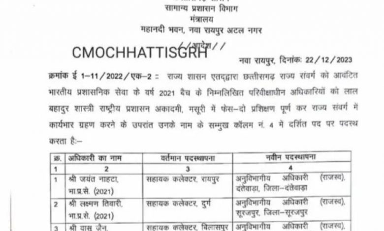 सारंगढ़ के नए एस.डी.एम होंगे वासु जैन देखे लिस्ट…