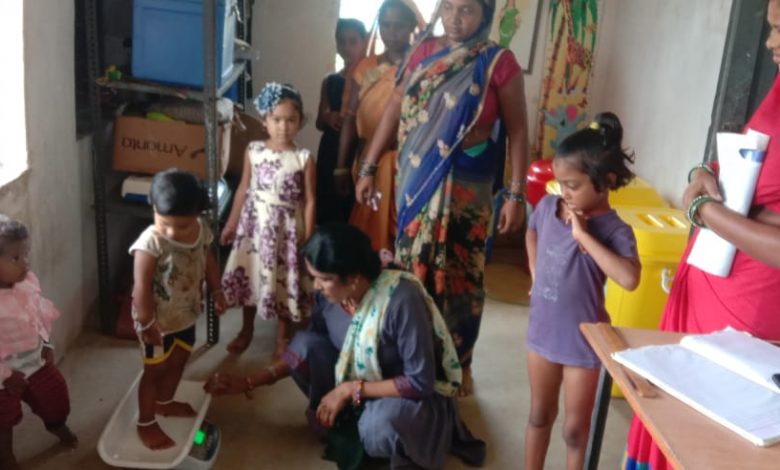 आंगनबाड़ी केंद्र दानसरा2 में मनाया गया हर्षोल्लास से वजन त्यौहार।