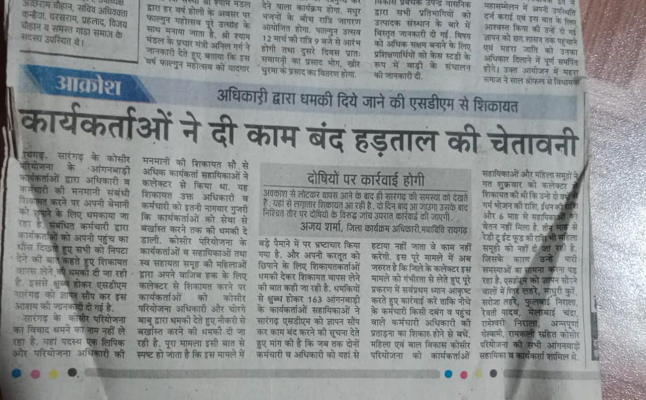 महिला एवं बाल विकास रायगढ़ में पदस्थ बाबू के बड़े कारनामे, परियोजना कार्यालय के ओपरेटर को डरा धमका कर ग़लत कार्य करने बना रहा दबाव, कुख्यात बाबू भ्रष्टाचार के आरोप में था निलंबित