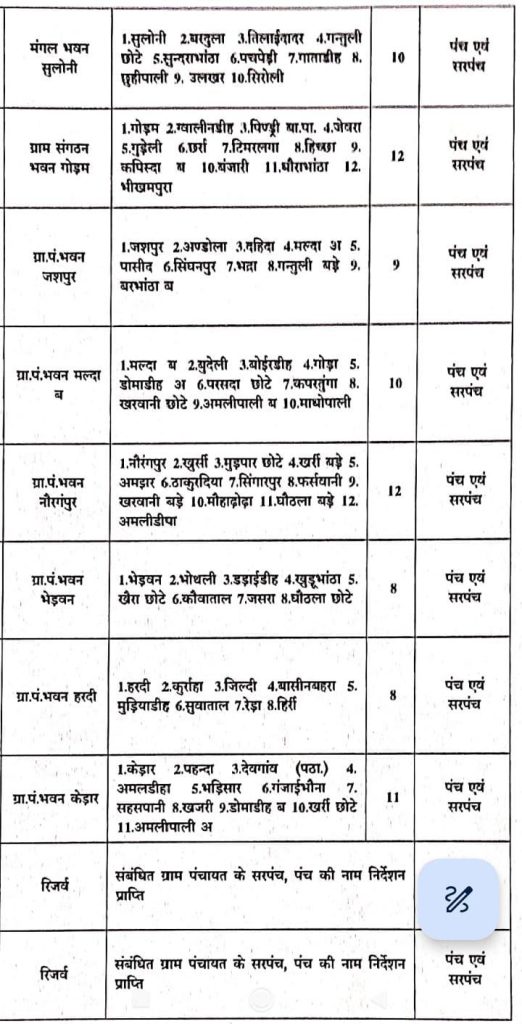 सारंगढ़ क्षेत्र के पंच सरपंच नामांकन के लिए बनाए गए जोन,,नामांकन की अंतिम तिथि 03 फरवरी।