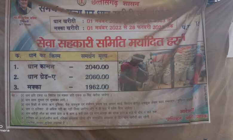तौल करने वाले हेमाल द्वारा बताया गया कि जिस धान को तौल किया गया था उस धान का नमी 15 प्रतिशत था। इस बात से साफ जाहिर हो रहा है कि किसानों के साथ कैसे नमी के नाम पर लूट किया जा रहा है अगर इस आंकड़े को धान की पूरी खरीदी के अनुसार देखा जाए तो सैकड़ों क्विंटल धान उपार्जन केन्द्र में शुद्ध बचेगा जिसका सारा लाभ हरदी वाले प्रबंधक उठाएंगे। और लाखो का मुनाफा उठाएंगे ।अगर इसकी पूर्ण जांच करे तो सारा खेला सामने आ जाएगा इतना ही नहीं कलेक्टोरेट कार्यालय की खाद्य शाखा मे लिखा हुआ है कि धान सुबह 9 बजे से तौल शुरू होना है लेकिन तौल के नियम को ताख में सारा खेल खेला जा रहा है,अधिकतर उपार्जन केन्द्रों में 2 बजे के बाद ही तौल किया जा रहा है जिसके चलते किसानो को देर रात तक उनके बारी का इंतजार करना पड़ रहा है सुबह से किसान बैठे बैठे शाम रात हो जाता है। वही तौल जल्दी नहीं होने की वजह से किसान काफी परेशान नजर आते है। आपको बता दे हरदी धान उपार्जन केंद्र में नोडल अधिकारी नही रहने के कारण प्रबंधक का मनमानी चरम सीमा पर है।।