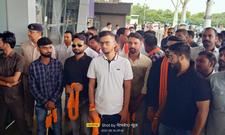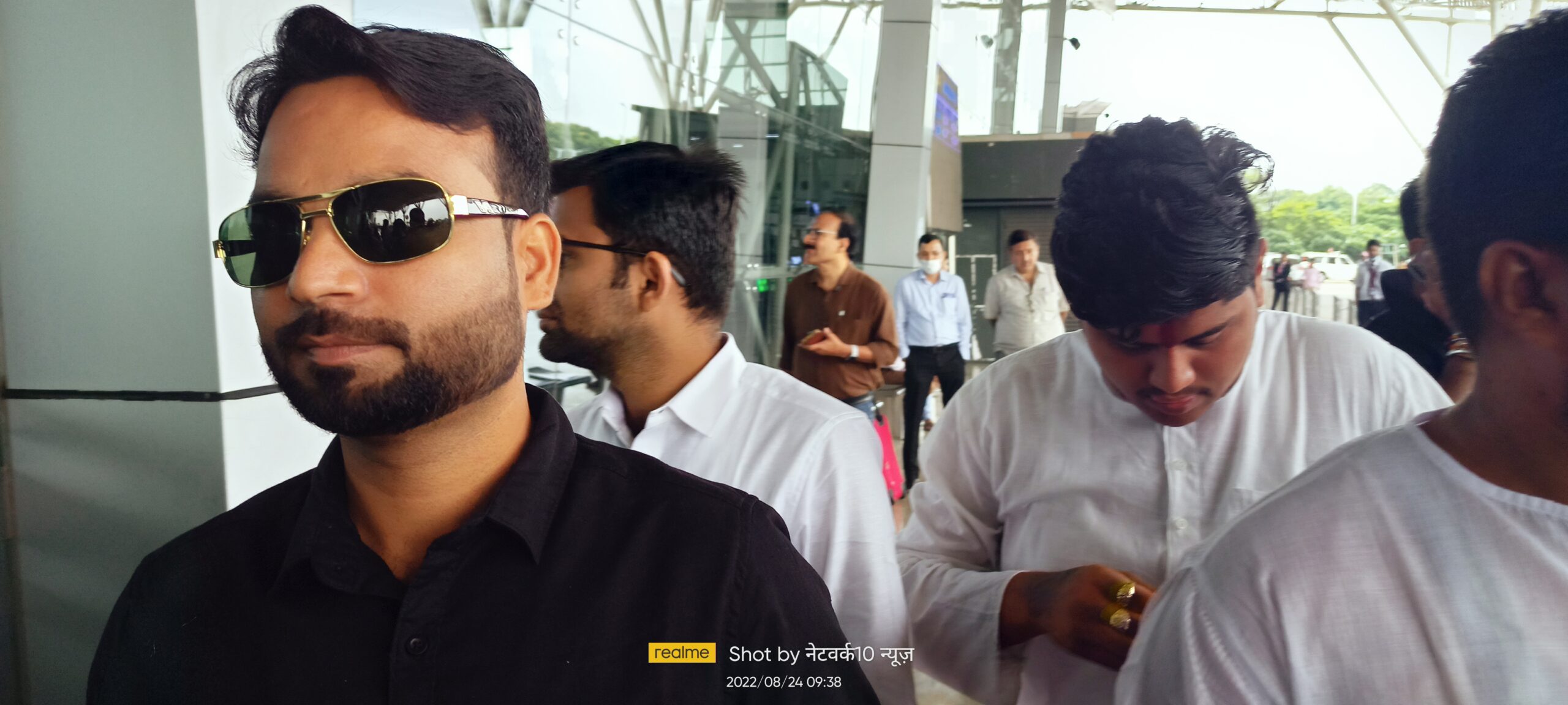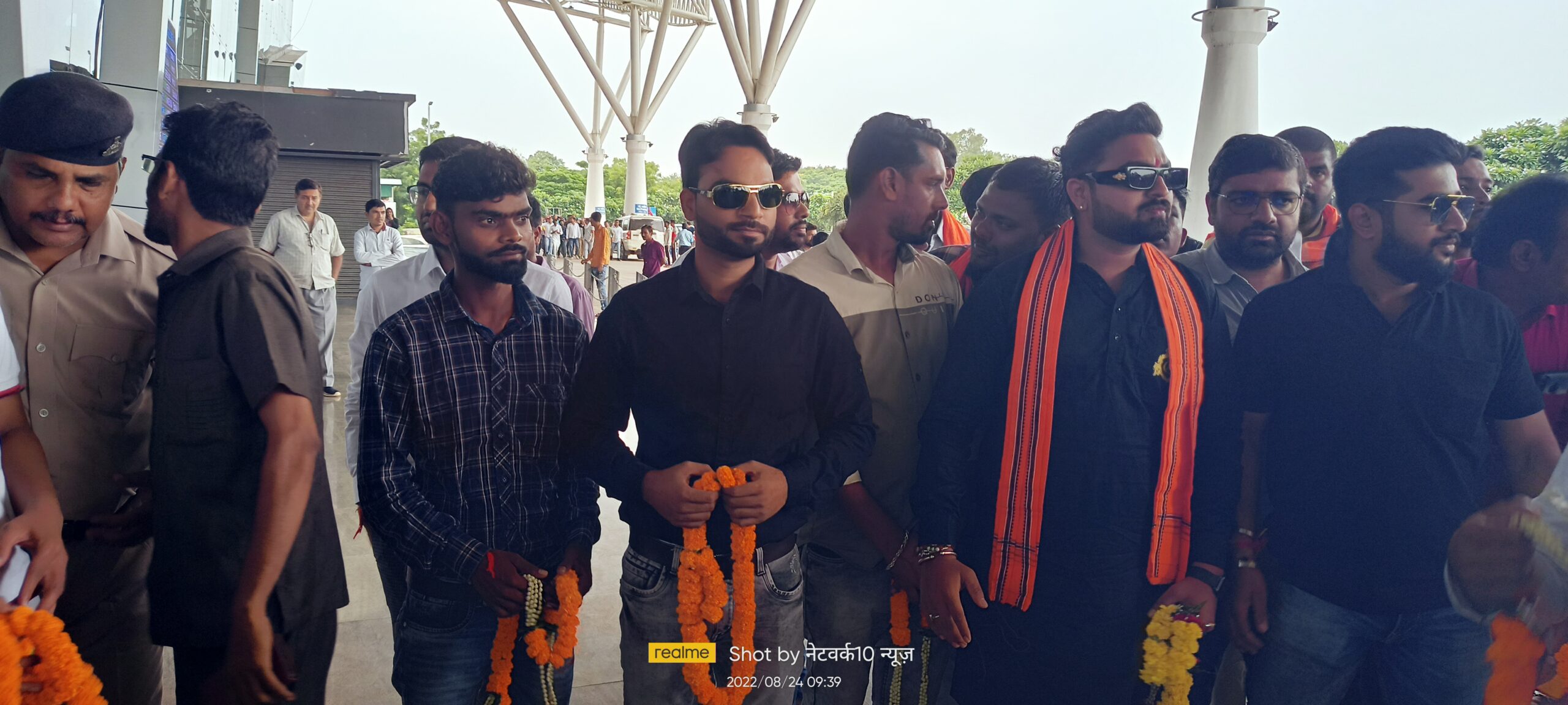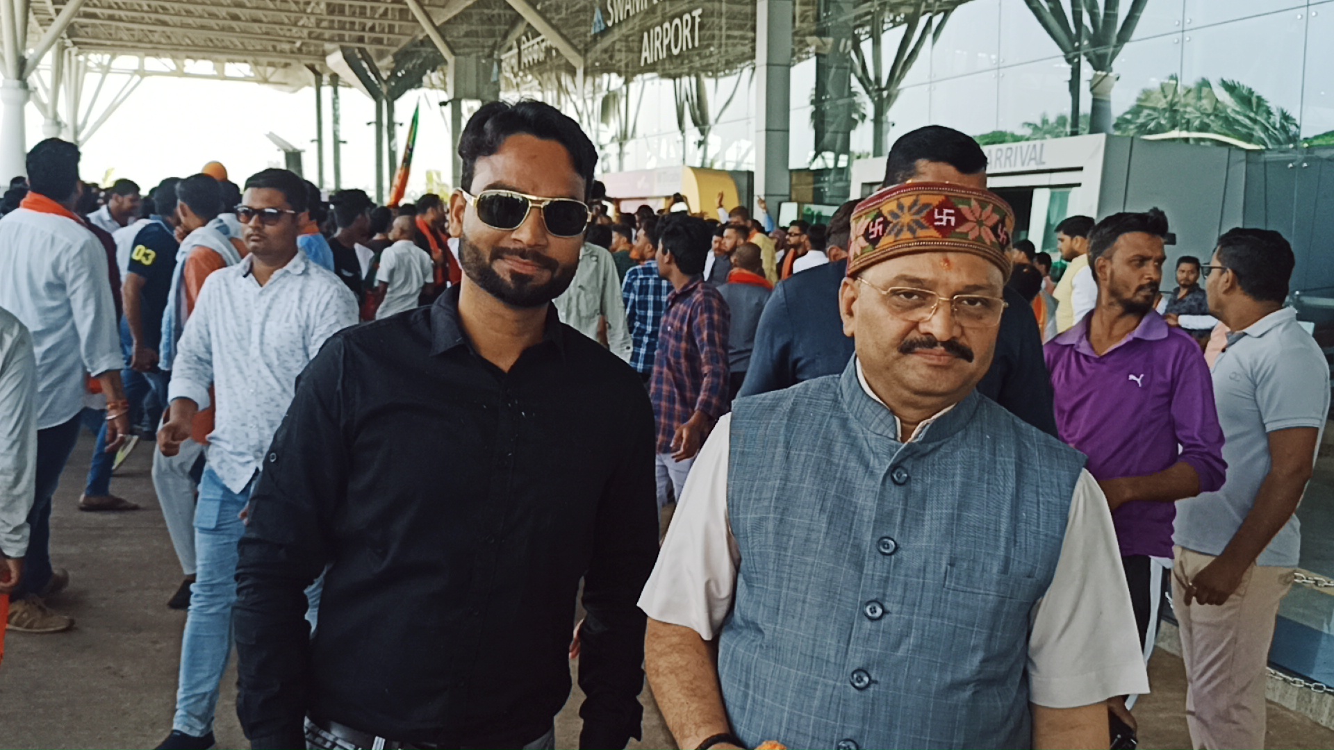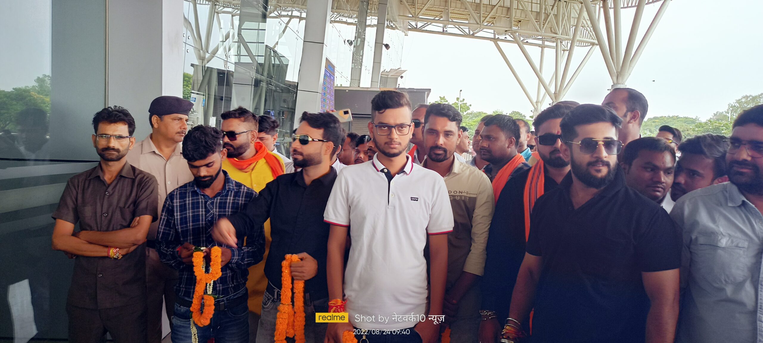 बड़ी संख्या में युवा मोर्चा के कार्यकर्ता एयरपोर्ट पर मौजूद