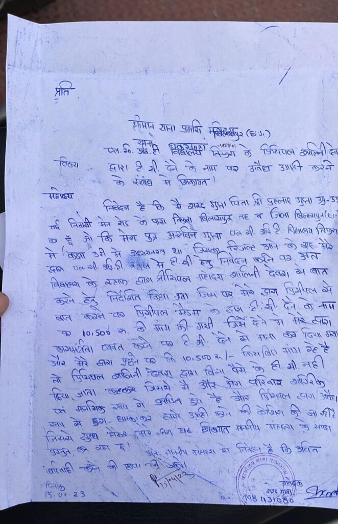शिकायतकर्ता ने टी सी देने के नाम अवैध वसूली का लगाया आरोप ।
