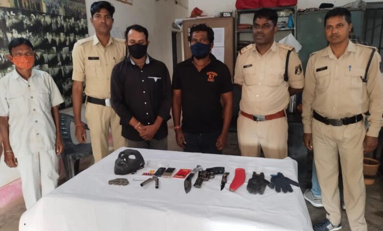 सारंगढ़:- पुलिस अधीक्षक राजेश कुकेरेजा जिला सारंगढ़ बिलाईगढ़ के द्वारा क्षेत्र में लगातार पुलिसिंग एवं पेट्रोलिग दौरान संदिग्ध व्यक्तियो एवं चेकिंग एवं सरहदी क्षेत्रो में चेकिग करने दिषा निर्देषन एवं अति पुलिस अधीक्षक महेशवर नाग के मार्ग दर्शन में आज दिनांक 13/10/2022 को थाना प्रभारी ए. के. बेक थाना डोंगरीपाली हमराह स्टाफ सउनि मानिकपुरी आर0 1162 चक्रधर सिदार ,244 किरण यादव के देहात पेट्रोलिंग पर बिरनीपाली की ओर रवाना हुऐ थे जो देहात पेट्रोलिंग दौरान मुखबिर सुचना पर बिरनीपाली उड़िसा बाडर पर घेराबंदी कर दो व्यक्ति को एक मोटर साइकल में पकडे जिन्हे बारिकी से पूछताछ करने पर अपना नाम – 1.देबांतक प्रधान पिता प्रफुल्ल प्रधान उम्र 39 वर्ष सा0 बरगढ वार्ड क्र0 03 कालेज रोड बरगढ थाना बरगढ टाउन जिला बरगढ उडिसा 2- अमित बाग पिता रातू बाग उम्र 36 वर्ष सा0 सिमेण्ड नगर, पिपलीपाली बांधापाडा पोस्ट बरडोल थाना बरगढ टाउन जिला बरगढ उडिसा का होना बताये, जिन्हे पूछताछ कर मेमोरण्डम लिया गया जो अपने मेमोरेंडम में छत्तीसगढ राज्य के डोंगरीपाली बरमकेला सारिया व सारंगढ क्षेत्र में सुनसान घरों में चोरी एवं लूट पाट करने का कार्य करना बताये तथा जुलाई माह में बरमकेला क्षेत्र के सण्डा गांव के एक पक्के मकान में सोना चांदी जेवर चोरी करना बताये| ग्राम संडा में दिनांक 31.07.2022 की रात्रि 02.30 बजे सोने चांदी के जेवर कीमती 90,000 रुपये की चोरी की सूचना पर थाना बरमकेला में अपराध क्र.285/22 धारा 457,380 भादवी कायम किया गया था, जिसमें उक्त आरोपीगण संलिप्त रहे, जिसके कब्जे से कीमती 15,000 रुपये के सोने एवं चाँदी के जेवर जप्त किया गया है| आरोपियों के कब्जे से एक लोहे का चाकू (खुखरी) जिसकी फल की लंबाई नौ इंच, एक धारदार बटन चाकू, एक नकली रिवाल्वर जो देखने में असली रिवाल्वर जैसा है। चेहरा ढ़कने के एक प्लास्टिक मुखौटा तथा काला मांस्क, मिर्च पाउडर का पैकेट 02 नग, ताला खोलने का पिन, हाथ में पहने का दस्ताना दो नग, मुक्का मारने का लोहे का पंच व अन्य समान बरामद किया गया नही किया आरोपीयो को दिनांक 13/10/2022 आरोपियों को दिनांक 13/10/2022 के क्रमशः 13/05 व 13/15 बजे गिरफ्तार कर आर्म्स एक्ट के तहत रिमांड पर भेजा गया! गिरफ्तार आरोपी बरगढ़ उडीसा के रहने वाले है जो कि अगर पुलिस कि सजगता से पकडा नहीं जाता तो अवश्य ही क्षेत्र में कोई गभींर घटना घटित हो सकता था।